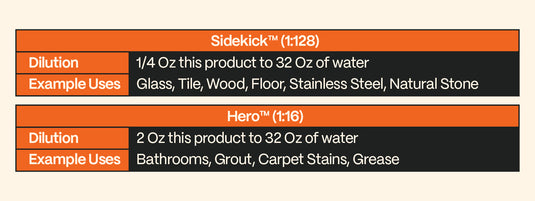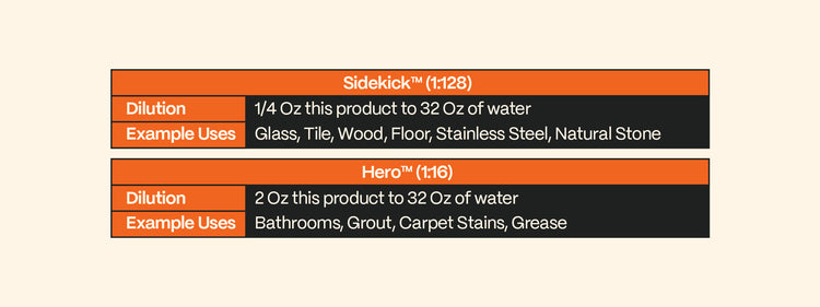 To dilute any of our super concentrates, follow the simple instructions on the back of the bottle, and refer to the chart below.